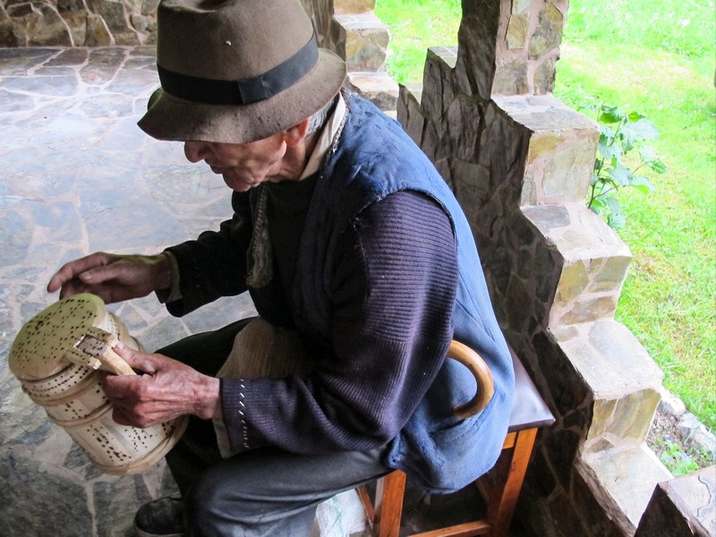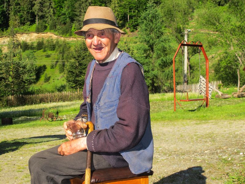 Abia se crapă de ziuă şi prinde soarele a arunca o geană de lumină peste brazi, rouă, iarbă şi flori, că badea Gheorghe Avram, la cei 91 de ani, roboteşte deja pe lângă casa lui din vârful dealului, pregătindu-se să coboare în sat, la Arieşeni, cu sacul în care rânduieşte cu grijă trei ciubăraşe de dimensiuni diferite. Dar mai întâi se îngrijeşte ca jumătăţii lui, acum slăbită şi bolnavă la pat, să nu-i lipsească nimic. Dă drumul din grajd celor două vite să pască pe lângă casă şi bea o cană de lapte proaspăt, făcându-şi cruce şi scuipând în sân: „Dumnezo’ cu mila, sper să am noroc azi, să vând batăr un ciubăraş di aista, ca-apoiu’ ne-om mai descurca câteva zile.“ Cu un baston, căruia i-a înfipt un cui mai zdravăn în vârf ca să-l poată folosi împotriva lighioanelor pe care le întâlneşte, uneori, pe drum, dar care-i sprijin de nădejde şi la coborâtul şi urcatul dealului, cu sacul alb de rafie în spinare, cu un clop maroniu ce numără câteva zeci de ani, un pulovăr deşirat, nişte pantaloni de stofă, aceiaşi – fie vară, fie iarnă, o vestă albastră şi o pereche de adidaşi, la care nu se mai cunoaşte culoarea, o ia la vale. E destul de sprinten pentru vârsta lui, şi dacă îl scapi câteva clipe din ochi, rişti să nu-l mai vezi dintre brazi. Ia în fiecare dimineaţă cabanele şi pensiunile la rând, în speranţa că şi-a găsi ceva muşterii la ciubăraşele din lemn de brad, pe care le face tot el, de mână, cu mezdreaua, şi le decorează cu un cui înroşit în foc. Uneori mai dă peste câte cineva care să vrea să cumpere un ciubăraş sau putină, alteori trec zile întregi fără să se îndure cineva de el. Dar tot nu se lasă şi coboară în fiecare zi din vârful dealului, şi uneori se întâmplă să treacă pe la aceeaşi pensiune de două ori într-o zi. Aşa l-am surprins de bună dimineaţă, intrând în curte şi măsurând din priviri numărul maşinilor parcate, ca să-şi facă o idee de clienţii cazaţi şi dacă are sau nu vreo şansă să vândă ceva.