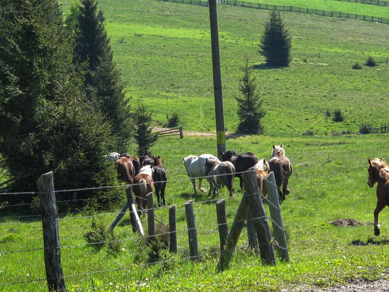 Mori de apă ce învârt stropi aruncând curcubee către soare, izvoare limpezi şi răcoroase, covoare de muşchi în întunecimi ademenitoare, pălării carmin cu buline, flori pistruiate, clopoţei de munte, verde crud mirosind a început de vară, umbre alungite de brazi peste cărări de munte, vârfuri cu căciuli de zăpadă, cai fremătând libertatea în nări, dăngănit îndepărtat de talangă, şi parcă te-ai aştepta să-ţi iasă în faţă Lizuca şi Patrocle.