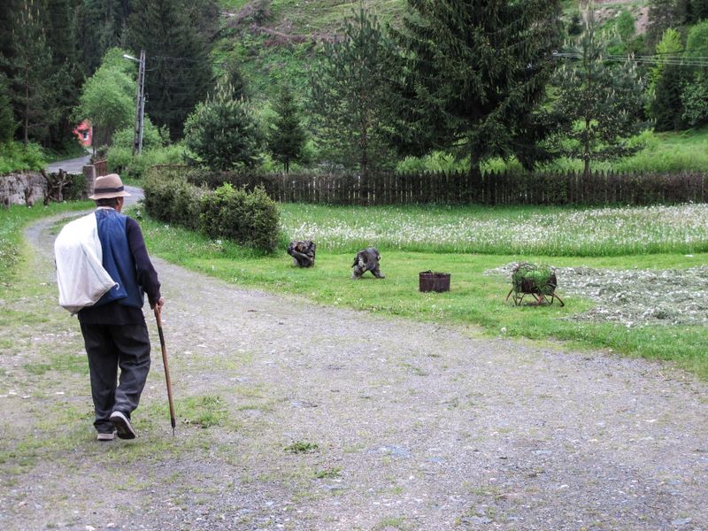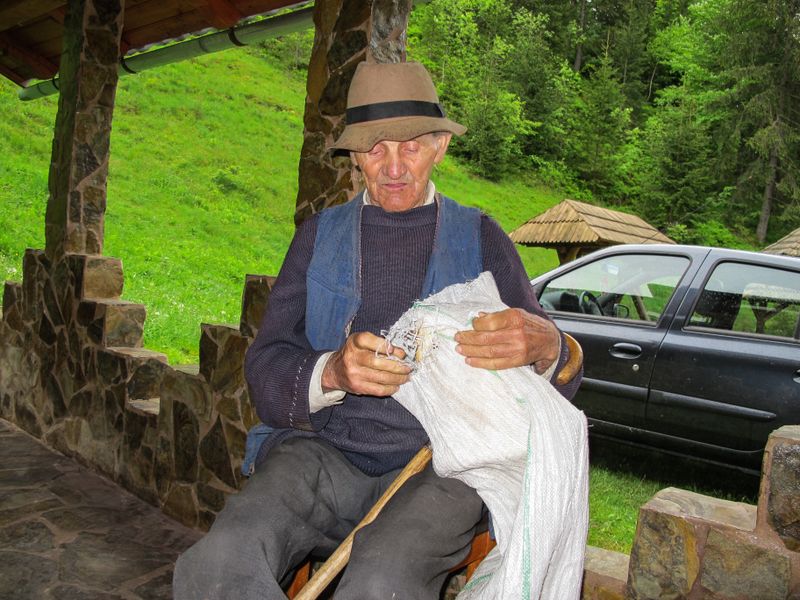 „Nu e o meserie uşoară, şi eu am învăţat-o de la tata meu, când încă eram copchil şi cu asta mi-am câştigat traiu’, că am tot umblat cu căruţa prin ţară şi am vândut. Am şi eu un ficior, dar el nu-i cu din aistea, el a mers la şcoale’ înalte, mai vine din când în când să-mi ajute la treburi. În trei săptămâni va începe cositul şi a vini şi el p-acasă. Mai am şi o nepoată.“ Cu sănătatea stă bine badea Gheorghe şi n-a luat o pastilă în viaţa lui, i-au cam căzut în schimb dinţii şi nu mai aude chiar atât de bine, dar mezdreaua o mânuieşte şi cu ochii închişi. Iernile nu mai sunt nici ele ce au fost, şi de câţiva ani încoace poate coborî în sat şi iarna, să-şi afle muşterii, care sunt mult mai mulţi atunci, că vin la schi şi la săniuş. Atunci se umple satul de atâta freamăt, maşini, fum şi gălăgie, că uneori noaptea se aude până sus la căsuţa de pe deal, semn că e rost de luat sacul de rafie în spate şi coborât printre nămeţii albi. Atunci badea Gheorghe e doar o pată întunecată ce alunecă uşor pe întinderea albă, lăsând în urmă o cărăruie pe care o caută de fiecare dată la întoarcere, la lumina stelelor. Dar iarna e încă departe şi până atunci, badea Gheorghe se bucură de fiecare zi în care reuşeşte să vândă un ciubăr, iar astăzi e una din acele zile, pentru că după ce a tras o tură pe la toate pensiunile din sat s-a întors la cabana de dimineaţă şi a vândut unul din cele trei ciubăraşe. Aşa că badea o poate lua din loc sprinten spre căsuţa din deal. Şi chiar de s-au adunat norii şi stă să plouă, nu vrea nici în ruptul capului să fie dus cu maşina, că doar ce dacă se udă, tot aşa se şi usucă şi poate pe drum se mai întâlneşte cu vreun muşteriu şi apoi lui nici măcar nu i se stă să intre în bolizii ăia mari, când el a mers de când se ştie numa’ pe picioare şi cu căruţa. Ce să caute el în maşinăria aia în care nici aeru’ nu miroase a aer şi merge atât de repede încât nu-şi poate auzi nici măcar gândurile. E drept că nici cel mai rapid armăsar nu te duce aşa iute ca maşina, dar nici nu poate merge pe cărăruia pe care badea Gheorghe şi-a întins paşii de-atâtea ori, încât o recunoaşte şi cu ochii închişi, şi de pe marginea căreia îşi tot culege plante ale căror leacuri numai el le ştie.