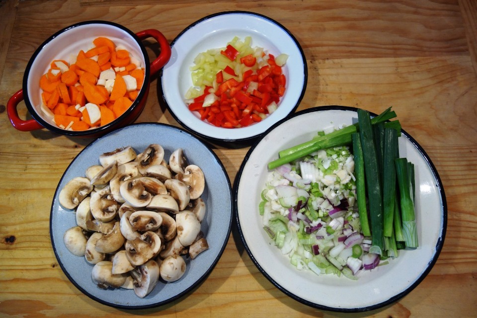 ” – Tocana asta o făcieam bugăt die dies. În timpu săptămânii o făcieam, că o făcieam fără carnie. Dacă nu aflam bureț pân pădure o făcieam și fără bureț. Da tăt mai bună-i cu ”carnie die pădure” cum le zâciea măicuța la bureț! Acarcare fel die bureț poț punie, uăiță, albe di pă rât, ciuciuleț, crăiță, da cele mai bunie-s hiribele. Nu-s bureț ca hiribele! Amu folosăști ciapă și ai verdie, îț mai trebe o thipărușe, duoauă, doi morcoz, on dărab die petrinjel, doi-tri porodici. Corățăști și speli binie ciapa și aiu. Tai mânâmțăl partia albă di la iele. Tai și thipărușa scrijeluță mnici. Tăt așe faci și cu zărzăvatu, morcodu și petrinjelu.