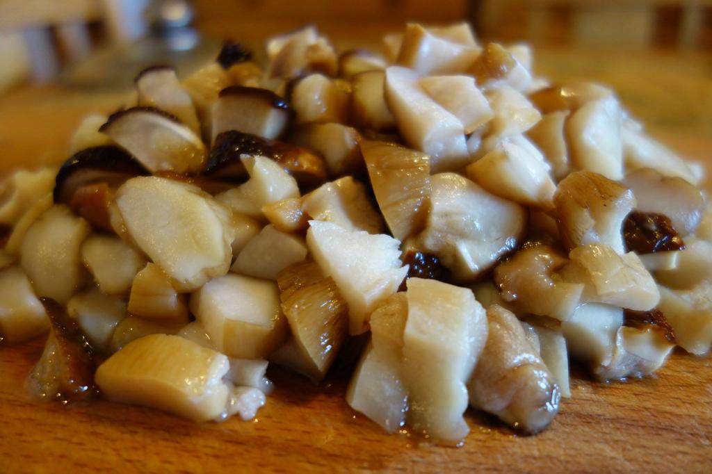 Corățăști și ciuciulețî, pă ciia mai mânânțăi lasă-i așe, pă ciia mai mărișori taie-i în doauă. Punie în laboș tri linguri die oloi și frije ciuciulețâ, amestecă-i și punie păstă ii hiribele, cârcălești-le diompreună on dărab die vreme și pticură câtio țârucă die apă, din ceie ce o-ai țânut. Nu lunji tare topala că lasă și hiribele oareșce zeamă, iele-s așe, mai băloasă, numai bunie pântru topală!