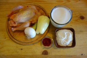 Tai on cocoșel ori o puicuță die toamnă… daca-i pus cloșcă primăvara. Opărești puiu și-l thicăzăști die pene, îl pîrlești la para di la șpiru pă care l-ai aprins înt-on blid die hier. Îl speli binie, îi scoț tăitecele, pui măruntaiele di-o partie, le speli și pă iele. Mațăle le dai la mâță. Tai puiu în dăraburi da cu grije, să nu zdrobdești cioantele că nu ț-a place să le sâmțăști pântre dinț…