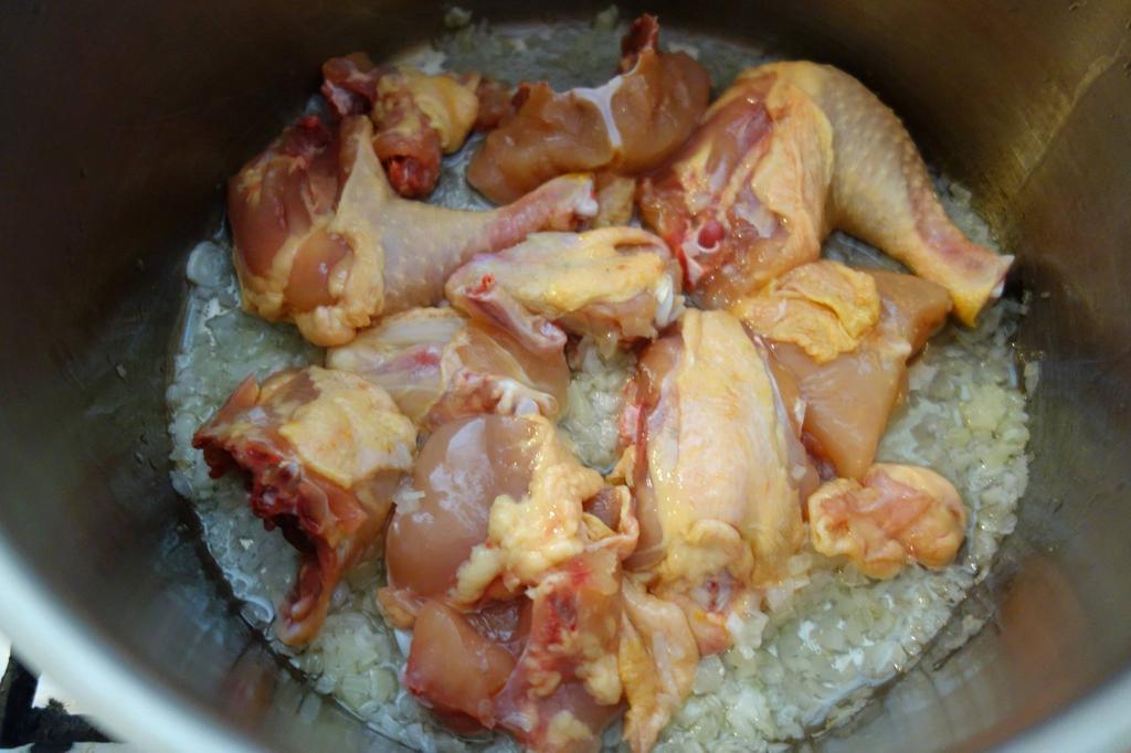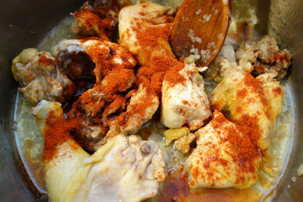Tai mânânțăl o ceapă ș-o thipărușe mai mnică. Le toptiești înt-on laboș c-o țârucă die oloi die ruje, coată die foc să hie molcuț, amesteci și cătă când ceapa și thipărușa s-o muiet fain, da nu s-o ars defel, pui carnea, amesteci, friji carnea până-i vidie că să aldiește, traji laboșu di pă foc, pui tri jejitie die poprică di-aceie dulce, amesteci și pui apă caldă cât să acopere carnea, pui iară pă foc, amesteci și las-o să hiarbă încet, încetuț.