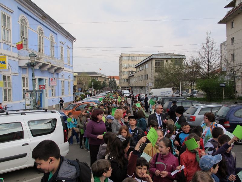 N-aș fi crezut că o să-mi păstrez zâmbetul pe față tot timpul cât a ținut evenimentul de azi, 9 aprilie, zi în care cei mici, și cei mai mari, elevi sau profesori de la Școala “Mihai Eminescu” din Zalău, au luat cu asalt orașul, un asalt ecologic, cu stegulețe, inimioare și pancarte verzi. Mesajul? Să salvăm planeta. Și pentru o zi, chiar dacă planeta e călcată în continuare cu bocancii murdari a nesimțire a celor care încă n-au învățat că locul unde locuim, oriunde ar fi, e, de fapt, acasă, ecologia a însemnat mai mult decât un cuvânt în dicționar, a însemnat atitudine.
