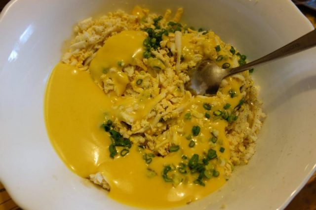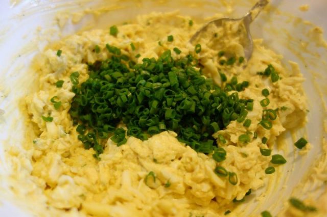 Amu, poț face uoauă die aiste orișicând, nu numa’ la Paști. Mamă-ta, Jenica, le facie cu maioneză. Ni numa’ cum face iea maioneza: on gălbănuș die uou hiert îl treci pân strecurătoarea ceie diasă, uări îl zdrobdiești binie, binie cu o furcuță. Pui păstă iel on gălbănuș crud, on hir die sare și amesteci binie. Sloboz on hir subțâre die oloi și tăt amesteci. Poț punie și o lingurucă mnică die muștar. Uoauăle așe le faci cum ț-am spus numa’ că în loc die unsoare pui maioneză. Nici unsoare nici maioneză, ce pui, nu pui multă, atîta numa’ cât să leje uoauăle. Nu tre’ să hie grasă, nu? Tie sămălești câtie uoauă ai, câtă ciapă tai, câtă unsoare. Să hie potriditie, nu pui una mai mult ca alta, tre’ să aibă on gust bun și să nu hie pe multă ciapă o pe multă unsoare. Cearcă numa’ cearcă, vez ce bunie-s și-n-ton fel și-n altu. S-aveț sânătatie!”