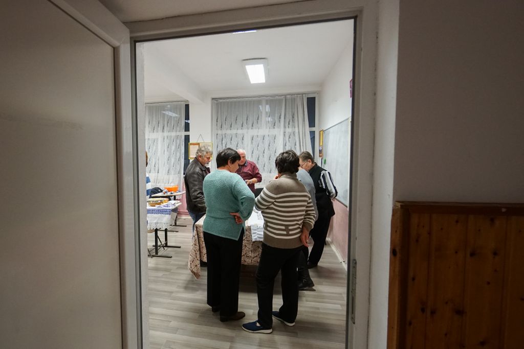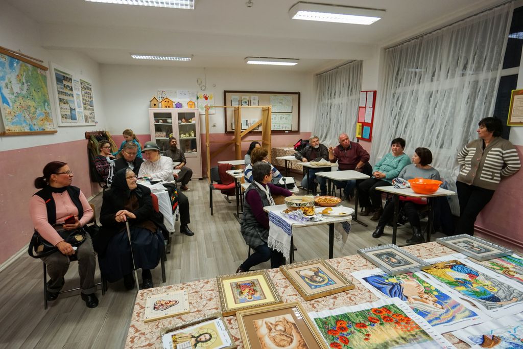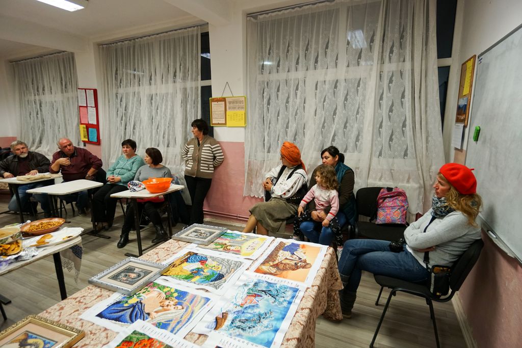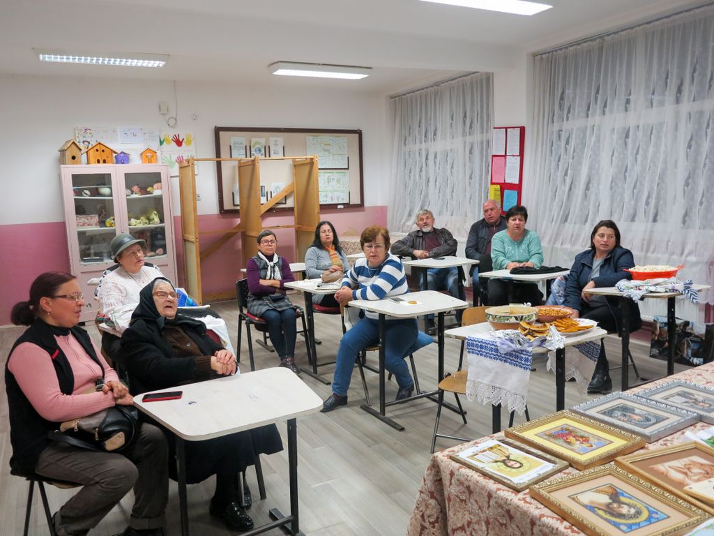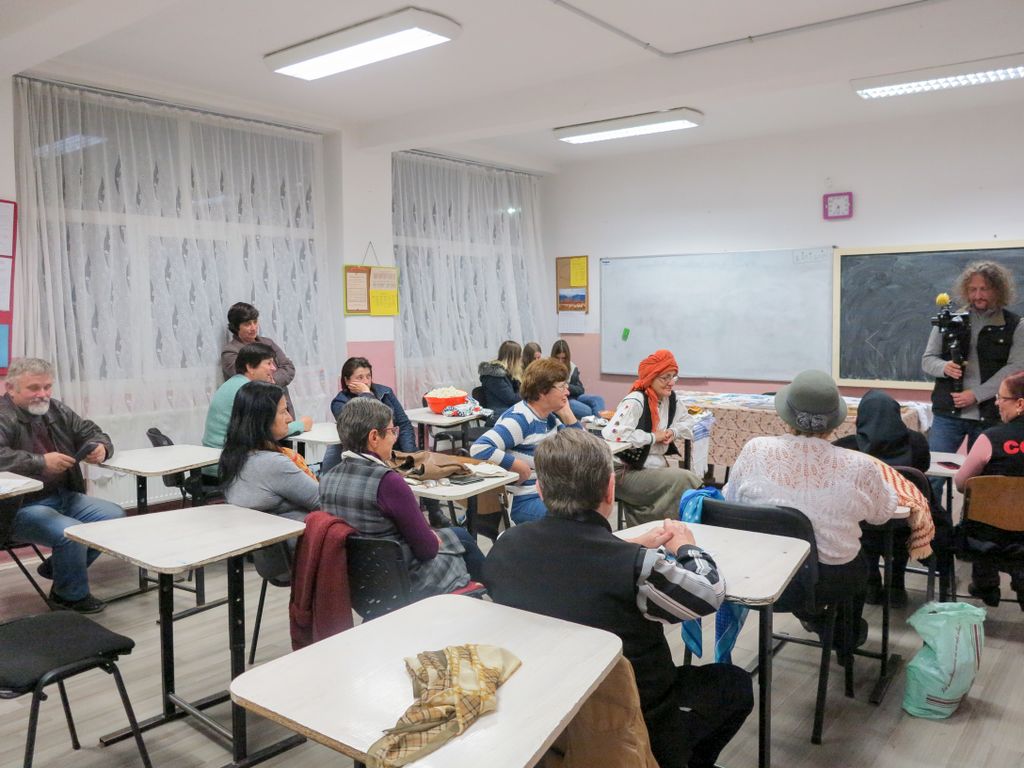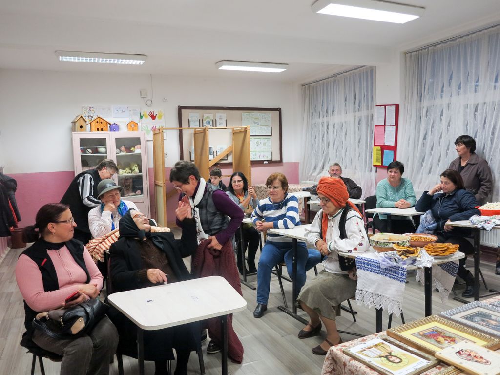 Am ajuns în fața școlii cu vreo 15 minute înainte de ora 17, și cum nu am sesizat nicio mișcare, ne-am întrebat dacă nu cumva s-o fi anulat, că uneori nu e așa de ușor să te întorci la ce a fost cândva. Nu a trecut, însă, multă vreme și cineva a deschis școala, apoi oamenii au început să se adune câte doi, câte trei… mai ezitând, mai întrebând în stânga și- n dreapta. Printre primii a fost chiar Leontina, cu tanti Ludovica și Veronica, și încet încet, sala s-a umplut până au trebuit aduse scaune în plus.
