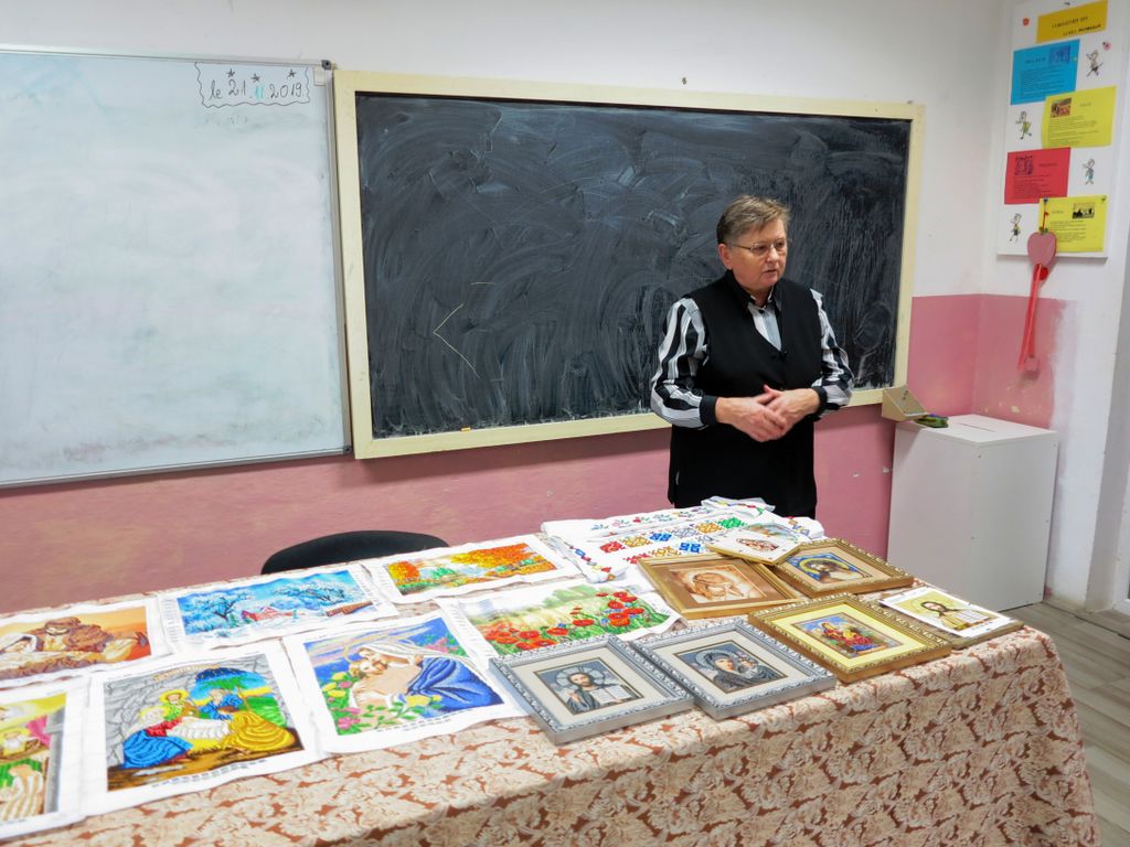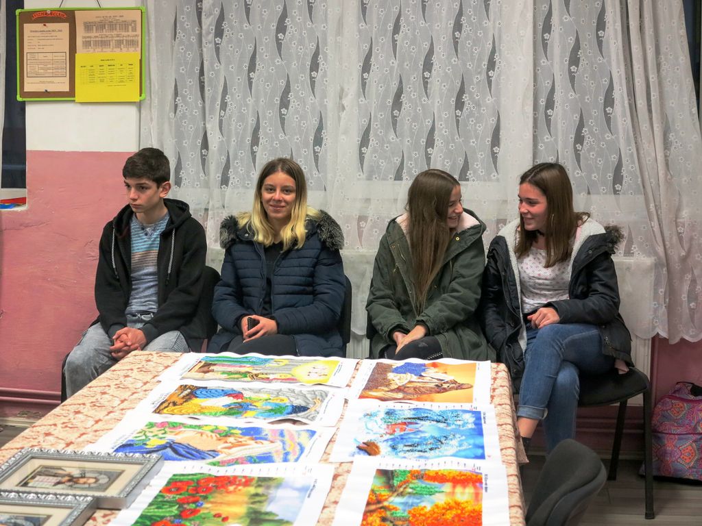 Tanti Ludovica era așezată deja în prima bancă, goblenurile cusute de 15 ani încoace în ață și mărgele de tanti Veronica stăteau frumos pe catedră și mirosea îmbietor a dublete, grăunțe fierte și turte de mălai.