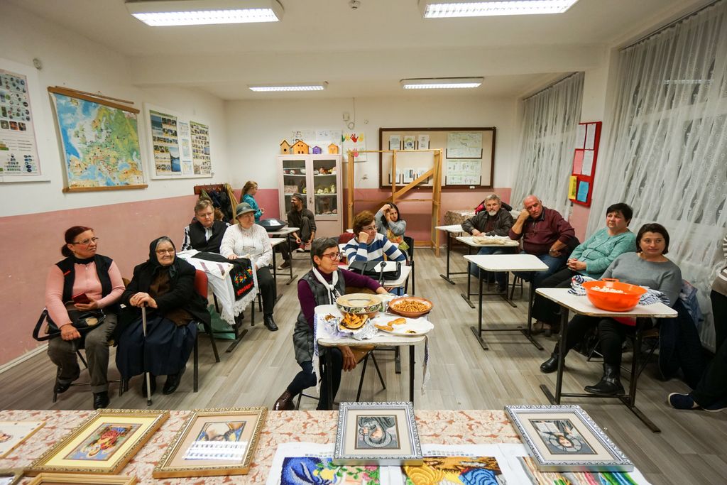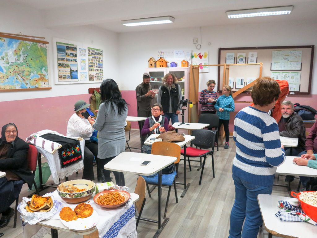 Am aflat de ideea șezătorii la o poveste, destul de scurtă, de altfel, la telefon când Leontina ne-a pus la curent cu noutățile și cu faptul că în fiecare seară de joi, între 17:00 și 19:00, la școala nouă din sat se va face habă, unde oamenii se vor strânge și vor petrece timp împreună, depânând amintiri, făcând lucru de mână, colindând și gustând câte ceva cum se obișnuia odinioară la astfel de ocazii.