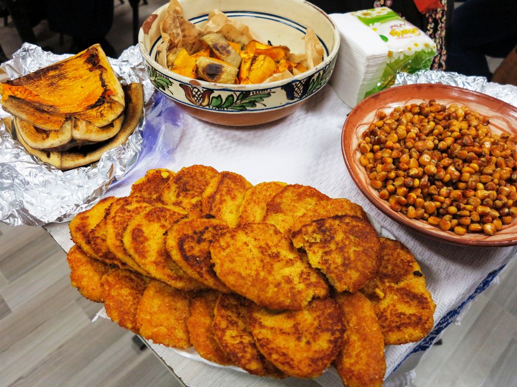 Și uite așa, cu colinde, cu amintiri, cu povestea de viață a lui Anica, care a stat 13 ani în Tenerife, cu goblenurile în care pe lângă ață și mărgele Veronica a cusut bucăți minuscule de suflet, cu o turtă, un dublete și o mână de cocoși calzi, seara a trecut completată de sunetele calde ale instrumentului lui Sebastian Vâlcea, care a îndemnat ușor la meditație și relaxare.