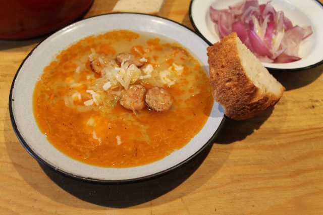 ” – Amu, că-i iarnă, curethi morat ai, on dărab die cărnaț afumat ieste! Îț mai trebe ciapă și tri linguri die rișcaș și, iacă, poț face o zamă! Una, duoauă faci o zamă!