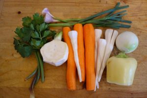 ”Api, ț-oi spunie, fătu-mnieu, ț-oi spunie cum să faci o zupă pă care n-o fac mulț! Abunăsamă că-i on ptic mai mult die lucru pân-o faci, da-ț spui io că să plătie! Aleji o găinușă mai tânărucă, nu mare tare. O dubălești binie după ce o opărești. Amu, c-o rămas fără penie, o pârlești să schepti și die condieiele mai mânănțăle care o scăpat di la dubălit. Aviea măicuța on blid die pleu în care puniea on păhăruț die șpir rămas di la făcutu pălincii. Șpiru ista îl țâniea, săraca, să-și frece gerunțîî că aviea, bdiata die iea, mătrici. Noa, da mai puniea, cum îț spui, șpir și în blid, îl aprindiea și așe pârle găina! Când nu iera șpir, aprindieam on poptiruș, făcieam și noi cum putieam! Așe! Ai corățat găina, amu a hi musai s-o dărăbulești.